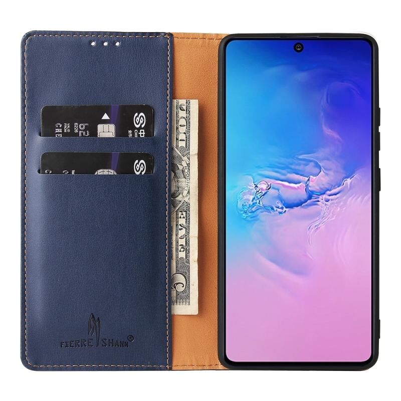 Θήκη οριζόντιας αναδίπλωσης FIERRE SHANN από δερματίνη PU με υφή για Samsung Galaxy S10 Lite / A91 / M80s, με βάση στήριξης & θήκες καρτών & πορτοφόλι (Μαύρο) (FIERRE SHANN)