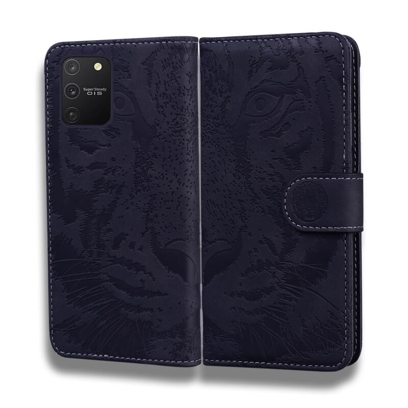 Θήκη δέρματος οριζόντιας αναδίπλωσης με σχέδιο ανάγλυφου τίγρη για Samsung Galaxy S10 Lite / A91 με βάση & υποδοχές καρτών & πορτοφόλι (Καφέ)
