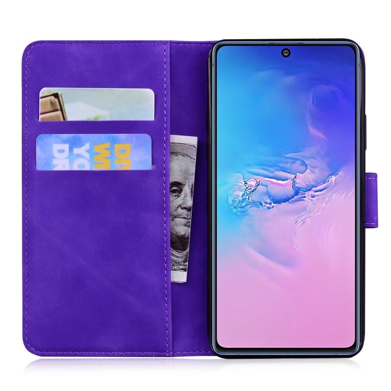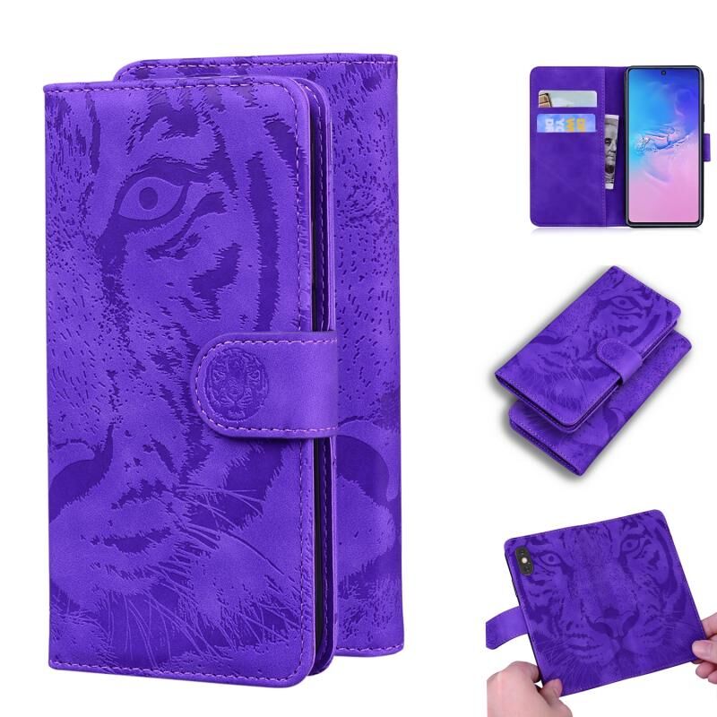 Θήκη δέρματος οριζόντιας αναδίπλωσης με σχέδιο ανάγλυφου τίγρη για Samsung Galaxy S10 Lite / A91 με βάση & υποδοχές καρτών & πορτοφόλι (Καφέ)