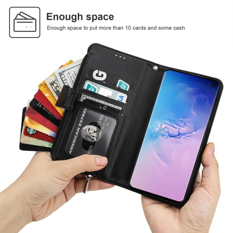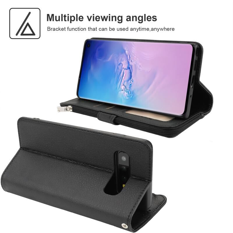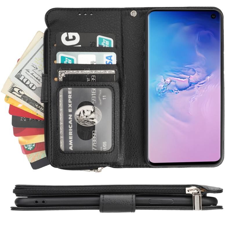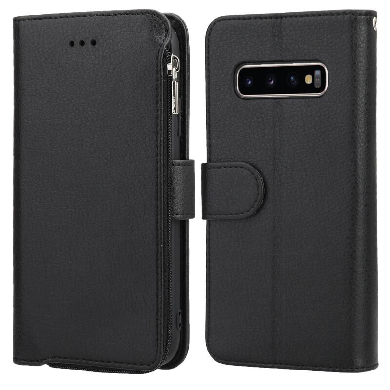 Για Samsung Galaxy S10 Microfiber φερμουάρ οριζόντια Flip δερμάτινη θήκη (Μαύρο)