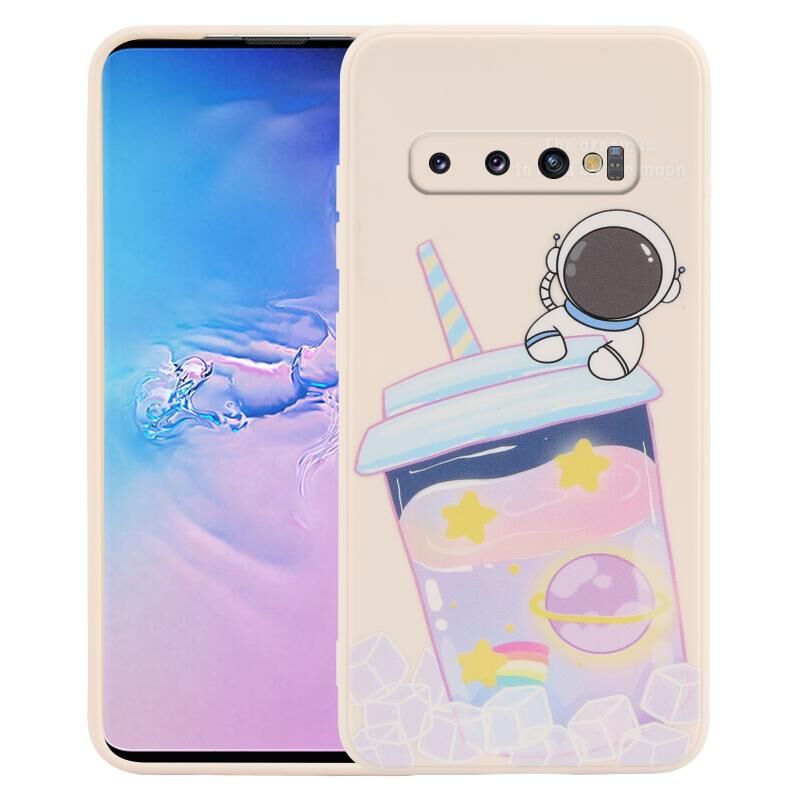 Θήκη σιλικόνης υγρού για Samsung Galaxy S10, σχέδιο αστροναύτη με γάλα τσαγιού (Λευκό)