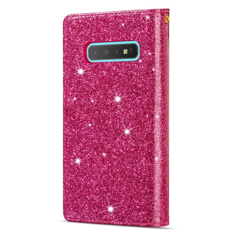 Θήκη δέρματος οριζόντιας αναδίπλωσης με φερμουάρ, με λαμπερό σχέδιο χάραξης λέιζερ αστρικού ουρανού, πολλαπλές θήκες καρτών για Samsung Galaxy S10, με βάση, πορτοφόλι και λουρί (Μωβ)