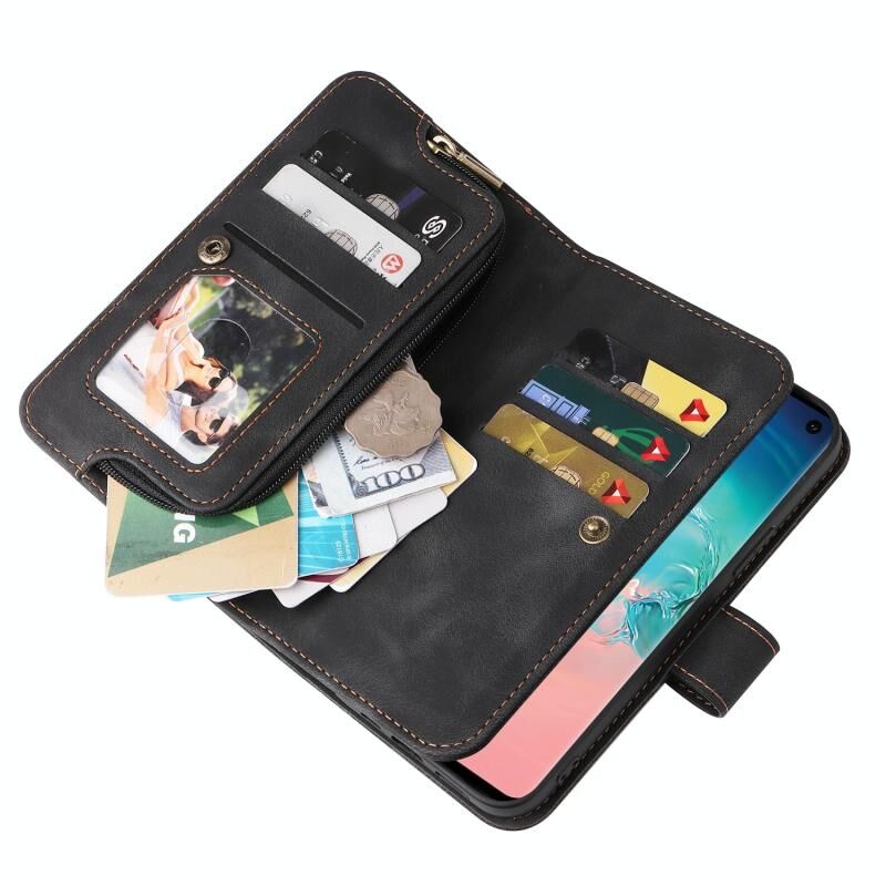 Για Samsung Galaxy S10+ Πολυλειτουργική κάρτα Slot φερμουάρ πορτοφόλι δερμάτινη θήκη τηλεφώνου (μαύρο)
