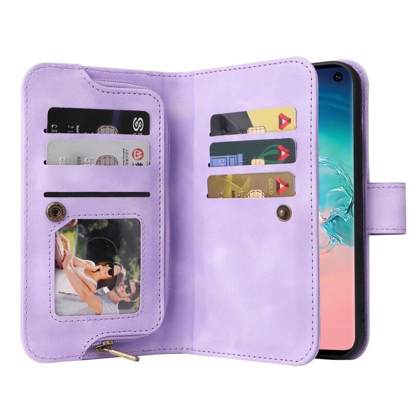 Για Samsung Galaxy S10 Πολυλειτουργική κάρτα Slot φερμουάρ πορτοφόλι δερμάτινη θήκη τηλεφώνου (μωβ)