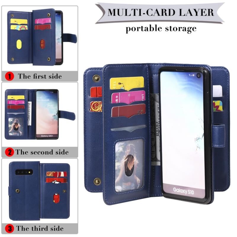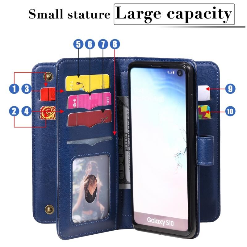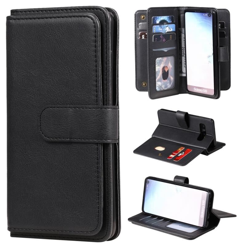 Για Samsung Galaxy S10 Πολυλειτουργική μαγνητική χάλκινη πόρπη οριζόντια Flip αμιγούς χρώματος δερμάτινη θήκη με 10 υποδοχές για κάρτες & πορτοφόλι & θήκη & κορνίζα φωτογραφιών (Μαύρο)