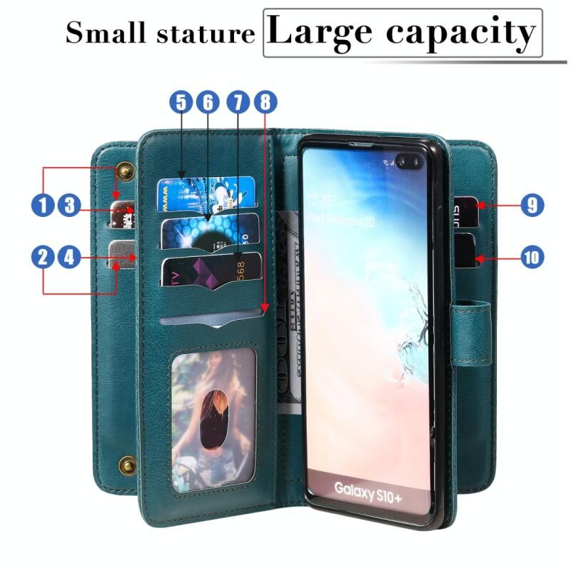 Για Samsung Galaxy S10+ Πολυλειτουργική μαγνητική χάλκινη πόρπη οριζόντια Flip αμιγές χρώμα δερμάτινη θήκη με 10 υποδοχές για κάρτες & πορτοφόλι & θήκη & κορνίζα φωτογραφιών (σκούρο μπλε)