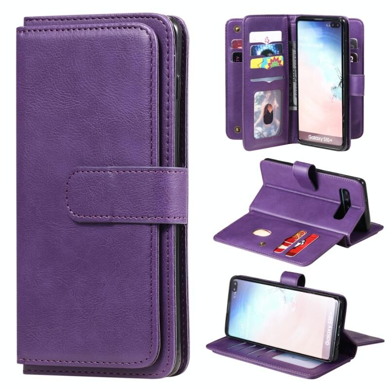 Για Samsung Galaxy S10+ Πολυλειτουργική μαγνητική χάλκινη πόρπη οριζόντια Flip αμιγές χρώμα δερμάτινη θήκη με 10 υποδοχές για κάρτες & πορτοφόλι & θήκη & κορνίζα φωτογραφιών (μωβ)