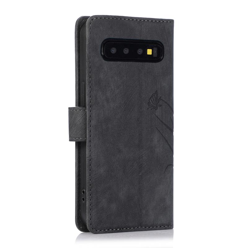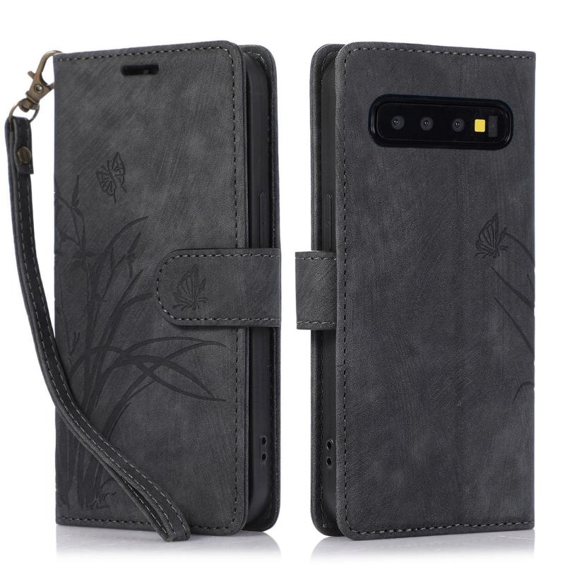For Samsung Galaxy S10+ Orchid Butterfly Embossed Leather Phone Case(Black)