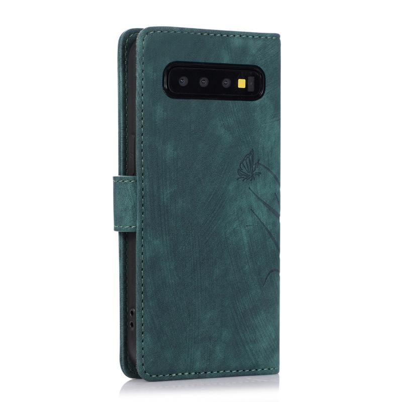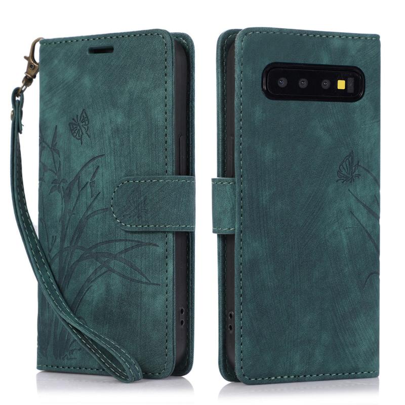 For Samsung Galaxy S10+ Orchid Butterfly Embossed Leather Phone Case(Green)
