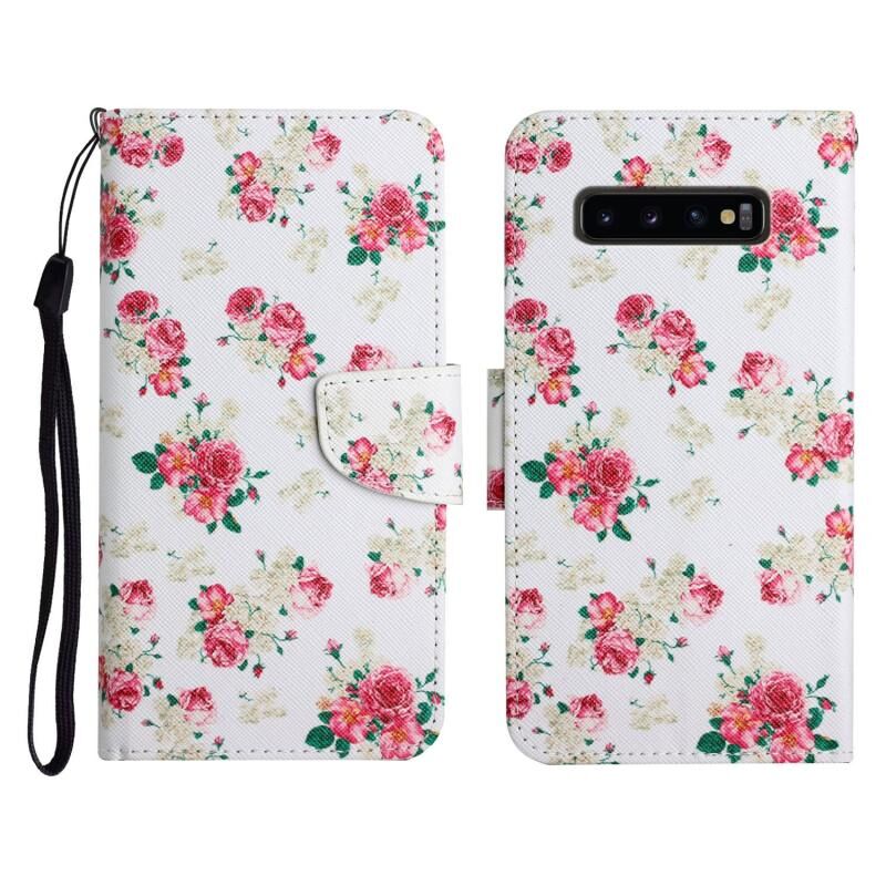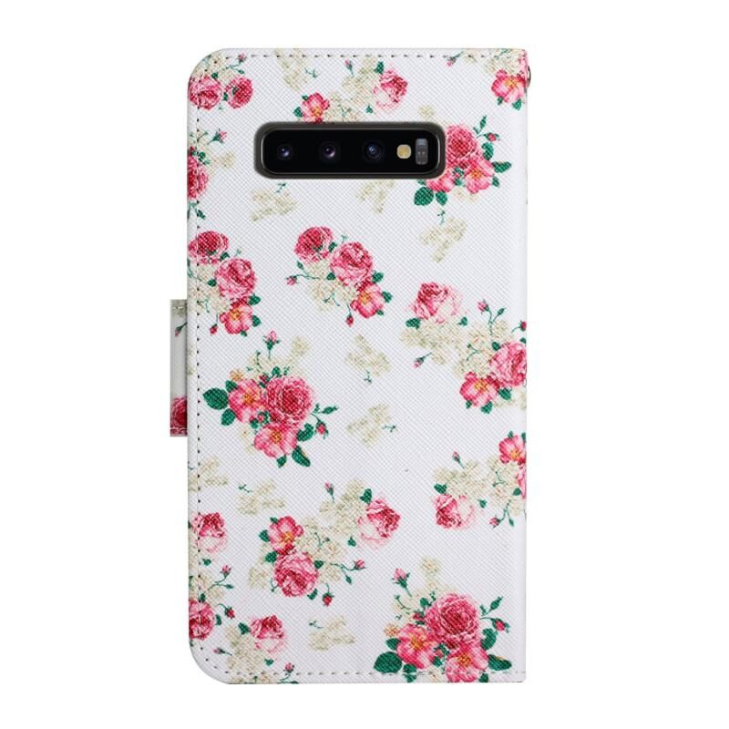 Θήκη δέρματος οριζόντιας αναδίπλωσης με σχέδιο ζωγραφικής για Samsung Galaxy S10 με βάση & υποδοχή κάρτας & πορτοφόλι (Κόκκινο Λουλούδι)