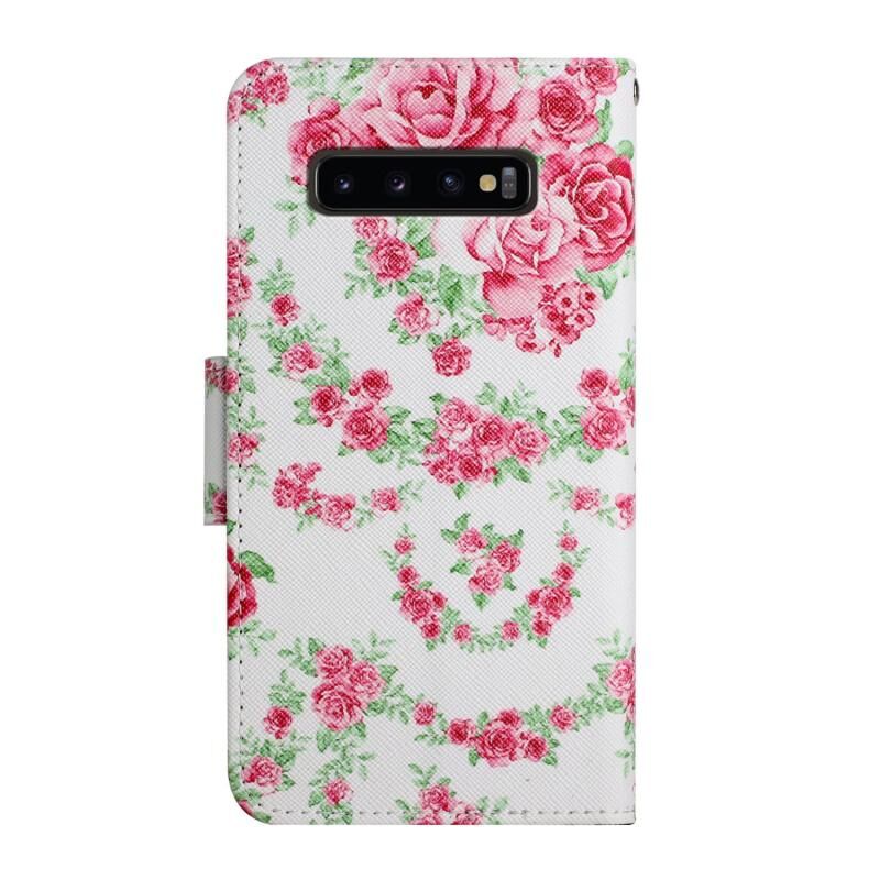 Θήκη δέρματος οριζόντιας αναδίπλωσης με σχέδιο ζωγραφικής για Samsung Galaxy S10 με βάση & υποδοχή κάρτας & πορτοφόλι (Τριαντάφυλλο)