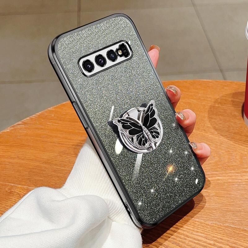 Για Samsung Galaxy S10 Επιμεταλλωμένο διαβάθμιση Glitter πεταλούδα κάτοχος TPU τηλέφωνο υπόθεση (μαύρο)