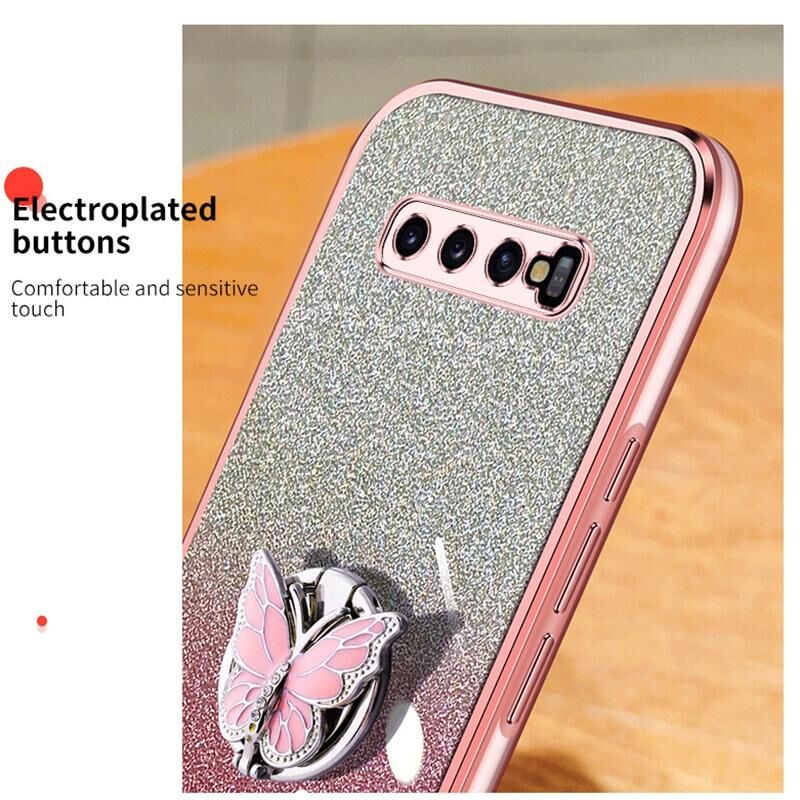 Για το Samsung Galaxy S10 + Επιμεταλλωμένο διαβάθμιση Glitter πεταλούδα κάτοχος TPU υπόθεση τηλεφώνου (μαύρο)