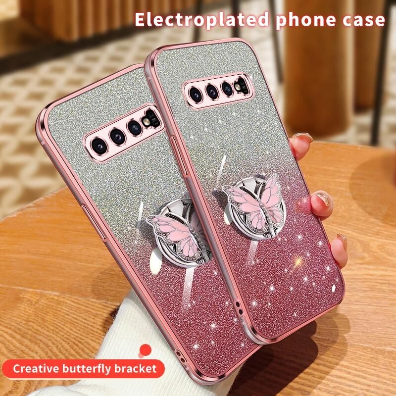 Για Samsung Galaxy S10 Επιμεταλλωμένο διαβάθμιση Glitter πεταλούδα κάτοχος TPU υπόθεση τηλεφώνου (μωβ)