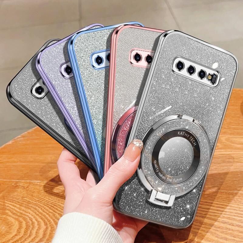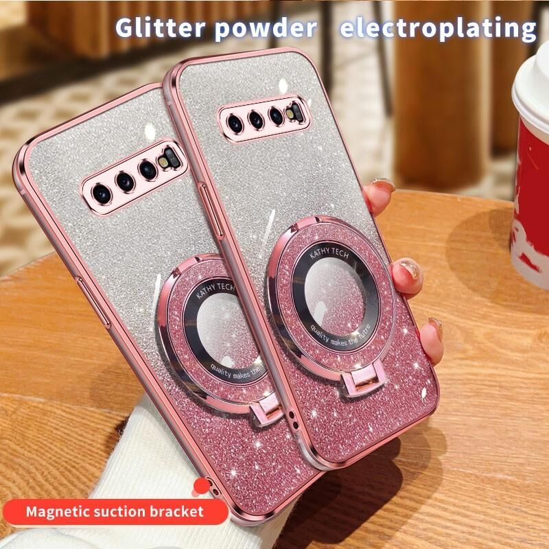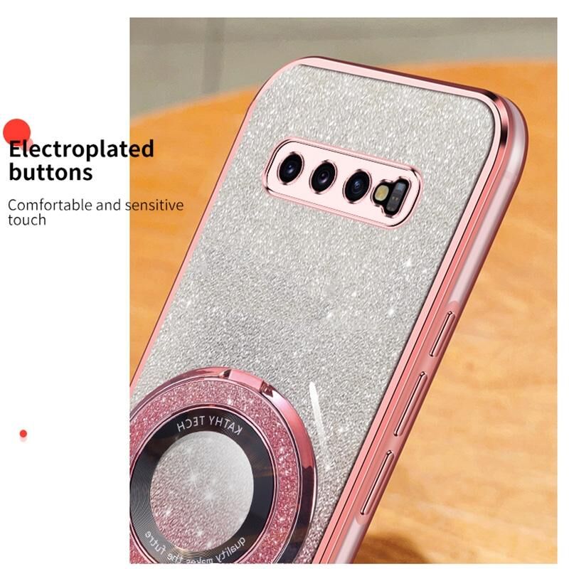 Για το Samsung Galaxy S10 + Επιμεταλλωμένο διαβάθμιση Glitter στρογγυλή θήκη TPU τηλέφωνο κάτοχος (ροζ)