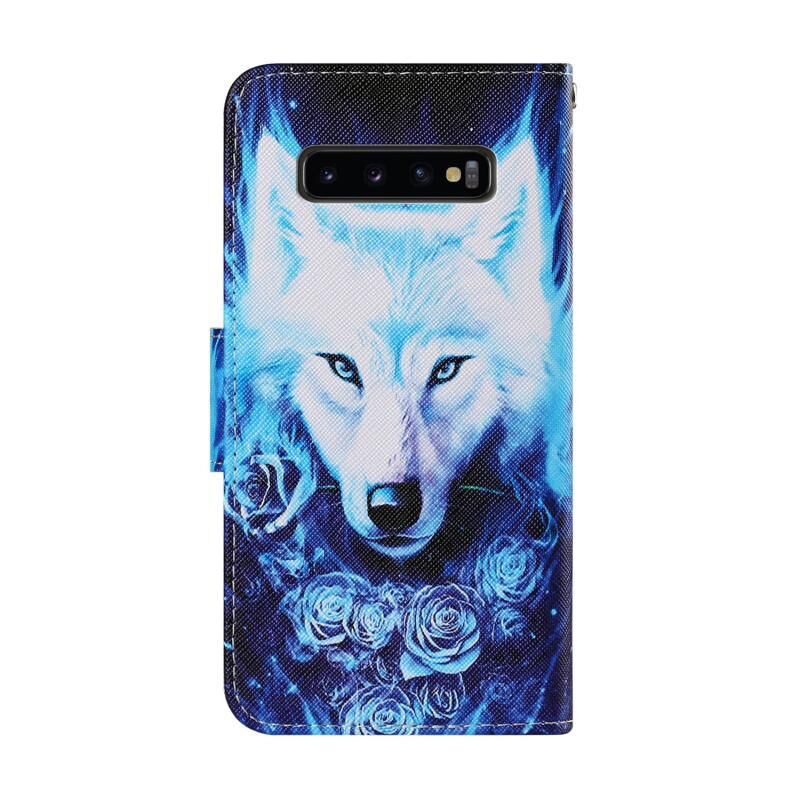 Θήκη Samsung Galaxy S10 Plus με πολύχρωμο σχέδιο, οριζόντια αναδιπλούμενη από δερματίνη PU με βάση στήριξης, θήκες για κάρτες, πορτοφόλι & λουρί (Rose Wolf)