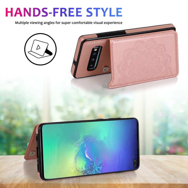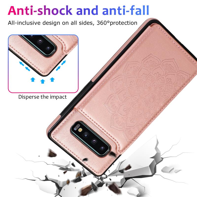 Θήκη προστασίας για Samsung Galaxy S10 Plus με διπλή αγκράφα, σχέδιο Mandala, PU+TPU με υποδοχές καρτών & βάση στήριξης & κορνίζα φωτογραφιών (Χρυσό Ρόδι)