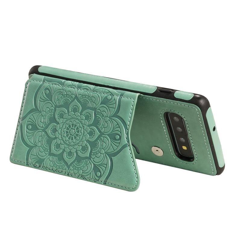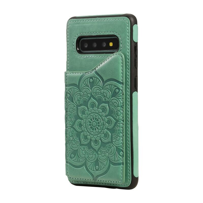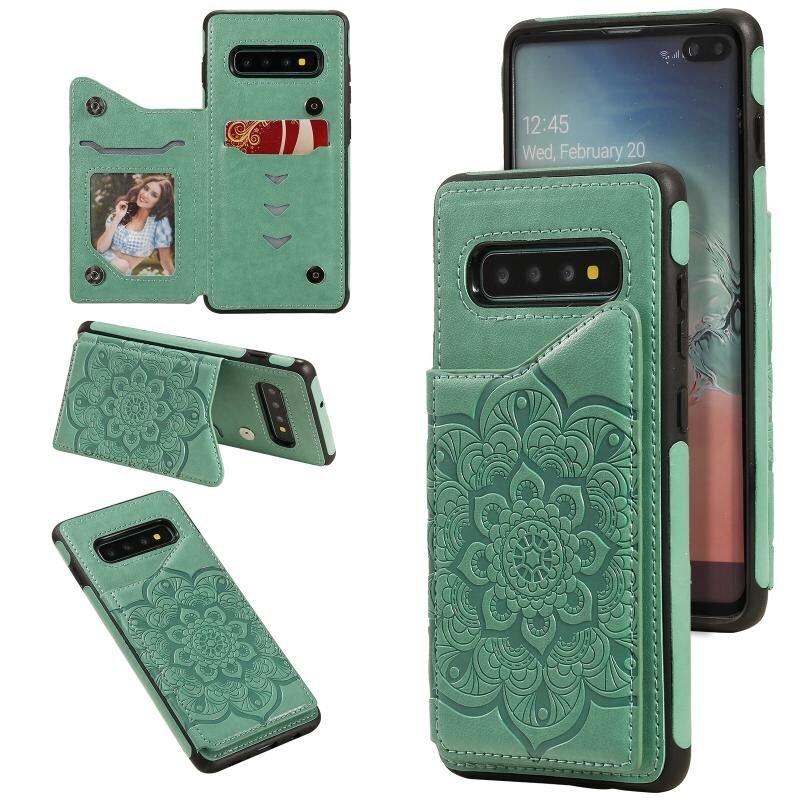 Για Samsung Galaxy S10 Plus Λουλούδι ανάγλυφο μοτίβο Shockproof προστατευτική θήκη με θήκη & υποδοχές για κάρτες & πλαίσιο φωτογραφιών (πράσινο)