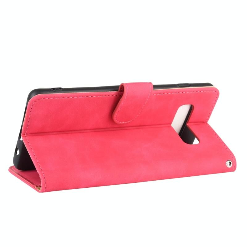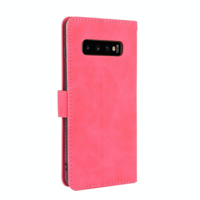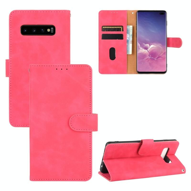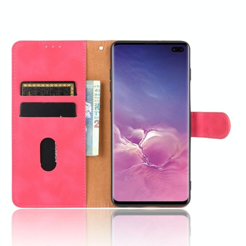 Θήκη για Samsung Galaxy S10 Plus με μαγνητικό κούμπωμα, οριζόντια, με υφή μοσχαρίσιου δέρματος PU, σε μονόχρωμο χρώμα, με βάση στήριξης & θήκες για κάρτες & πορτοφόλι (Ροζέ κόκκινο)