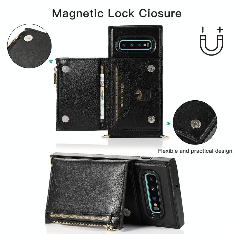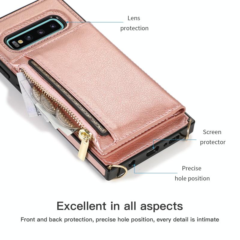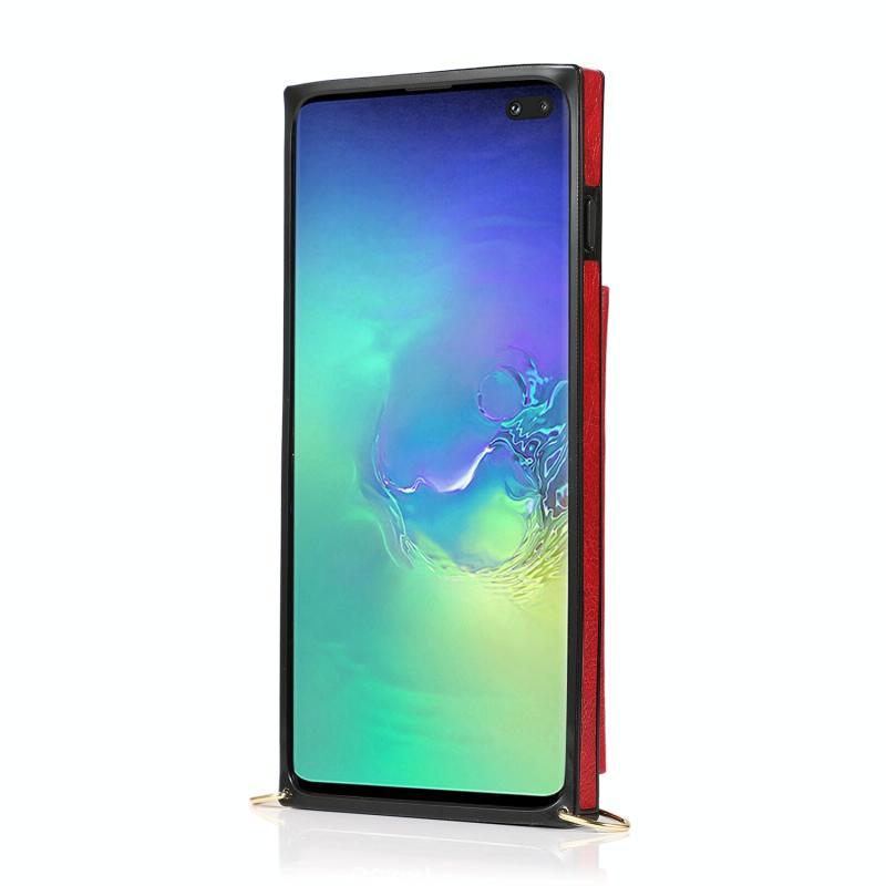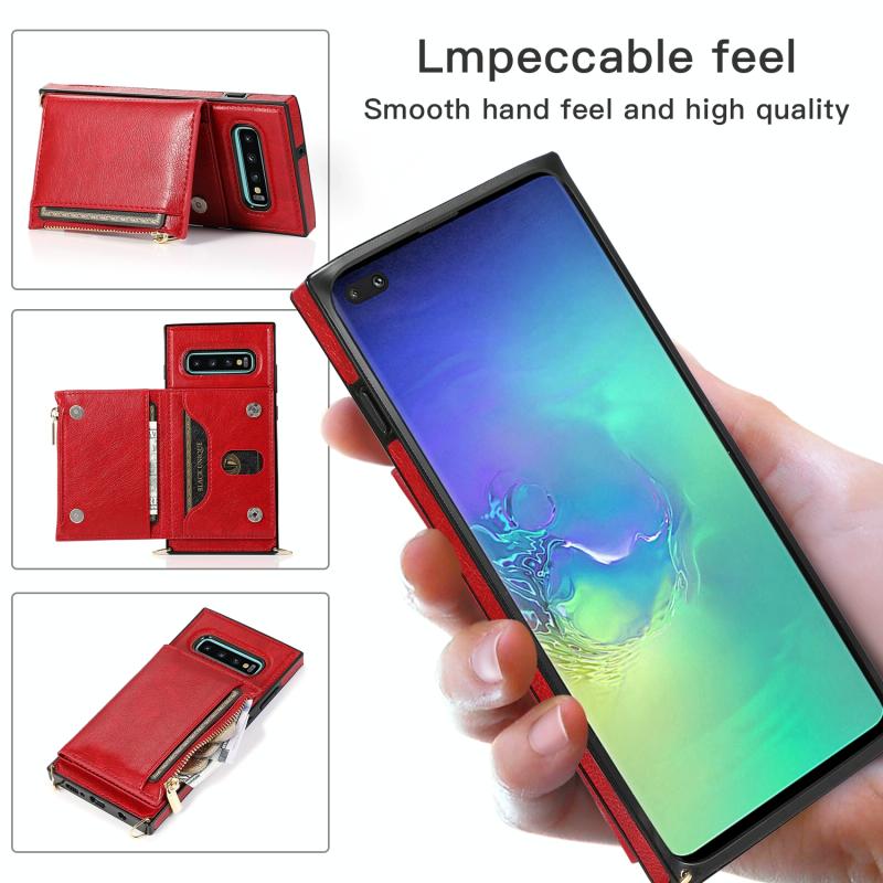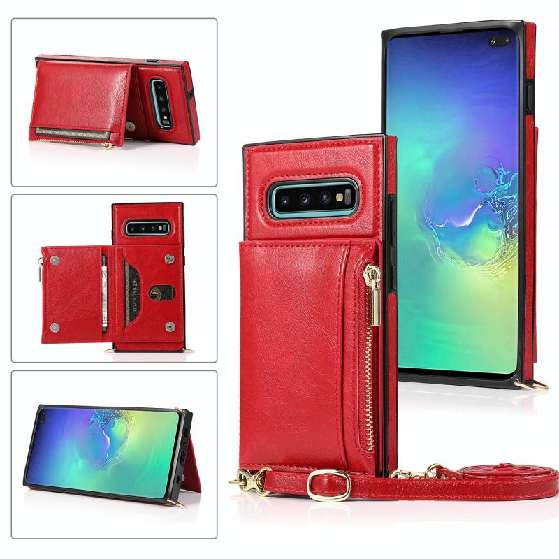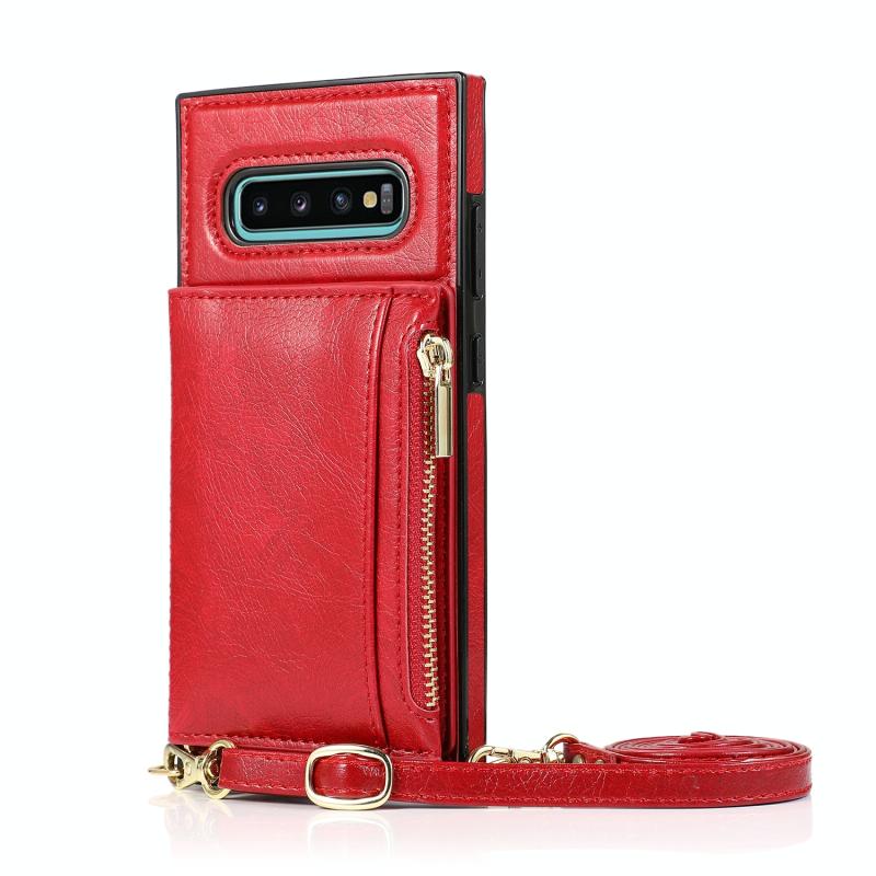 Για Samsung Galaxy S10 Plus, Τετράγωνη Θήκη Πορτοφολιού με Φερμουάρ, Επικάλυψη TPU+PU, με Λαβή, Θήκες Καρτών, Πορτοφόλι & Λουρί Χιαστί (Κόκκινο)