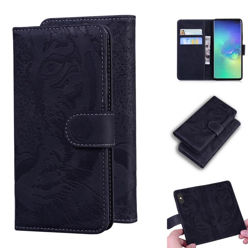 Θήκη δέρματος οριζόντιας αναδίπλωσης με ανάγλυφο μοτίβο τίγρης για Samsung Galaxy S10 Plus με βάση & υποδοχές καρτών & πορτοφόλι (Καφέ)
