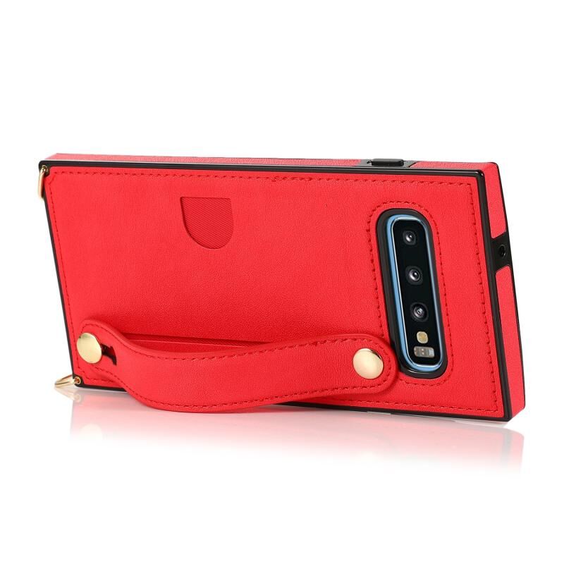Για Samsung Galaxy S10 Plus Λουράκι καρπού PU + PU Αδιάβροχη προστατευτική θήκη με κορδόνι & θήκη & υποδοχή κάρτας (κόκκινο)