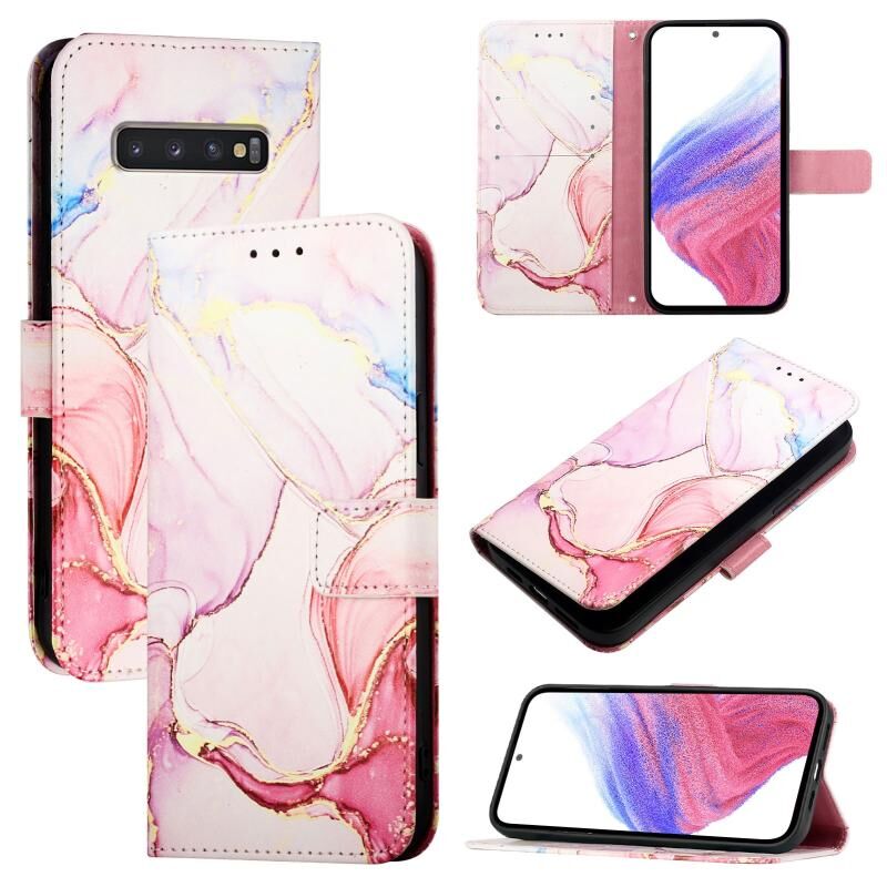 Θήκη τηλεφώνου Samsung Galaxy S10+ PT003 από δέρμα με σχέδιο μάρμαρου και πτυσσόμενο καπάκι (Ροζ, Μωβ, Χρυσό)