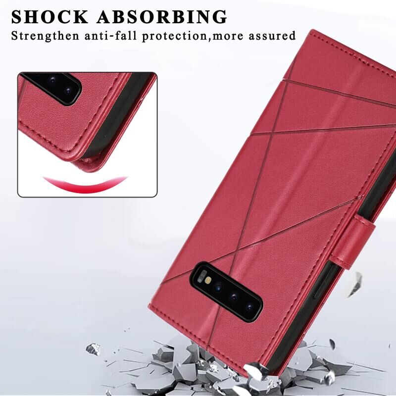 Θήκη τηλεφώνου για Samsung Galaxy S10+ από γνήσιο δέρμα PU με ανάγλυφη υφή και λεπτομέρειες γραμμής (Μπλε)