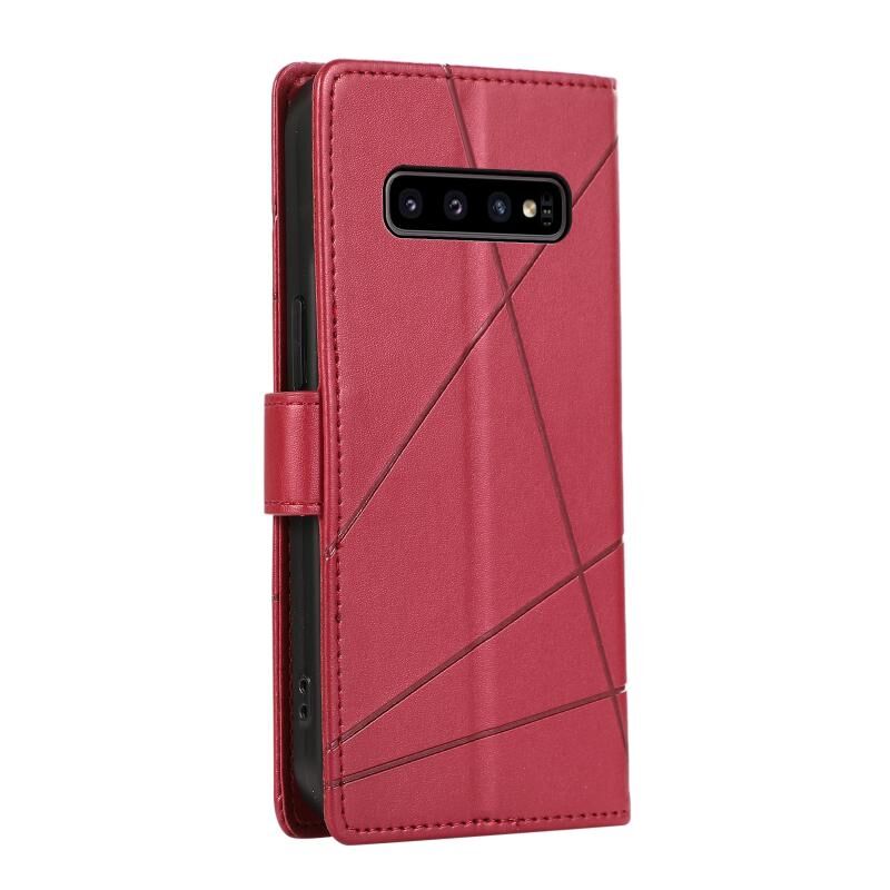 Θήκη τηλεφώνου Samsung Galaxy S10 από γνήσιο δέρμα PU με ανάγλυφη υφή και λεπτομέρειες γραμμής (Μπλε)