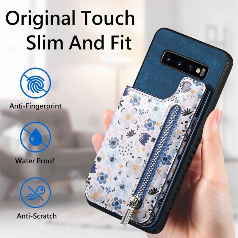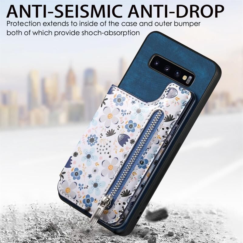 Για Samsung Galaxy S10+ Ρετρό ζωγραφισμένο φερμουάρ Wallet πίσω υπόθεση τηλεφώνου (μπλε)