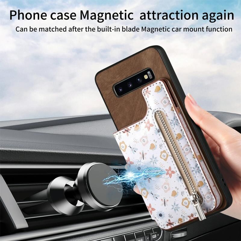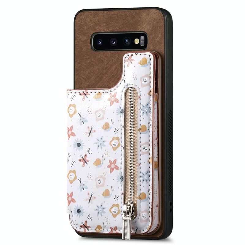 Για Samsung Galaxy S10+ Ρετρό ζωγραφισμένο φερμουάρ πορτοφόλι πίσω θήκη τηλεφώνου (καφέ)