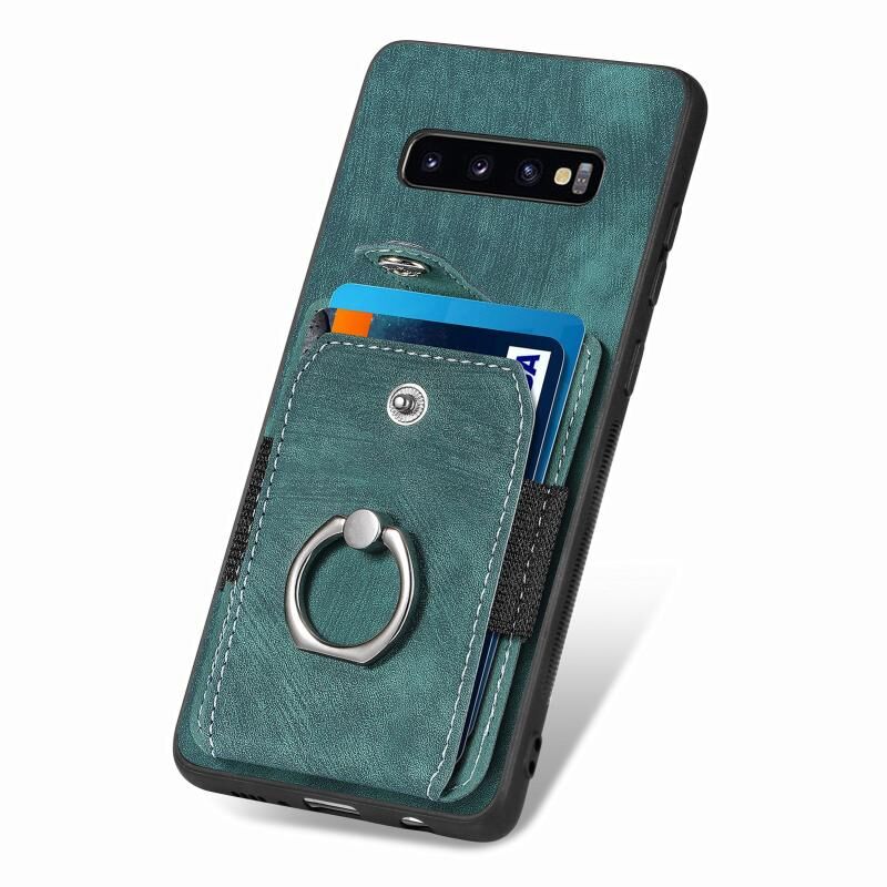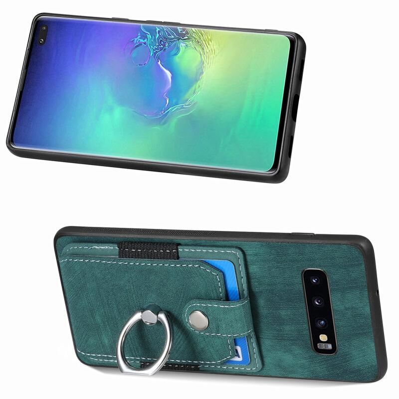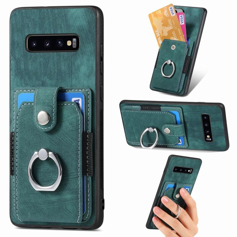 For Samsung Galaxy S10+ Retro Skin-feel Ring Card Wallet Phone Case(Green)