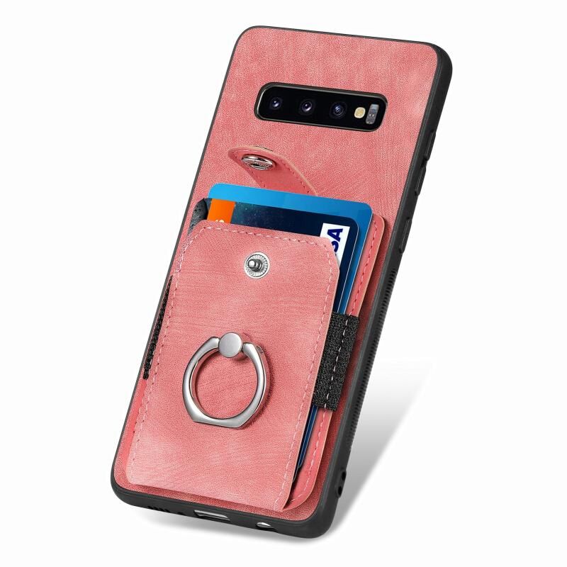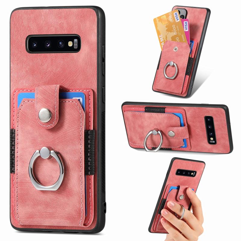 For Samsung Galaxy S10+ Retro Skin-feel Ring Card Wallet Phone Case(Pink)