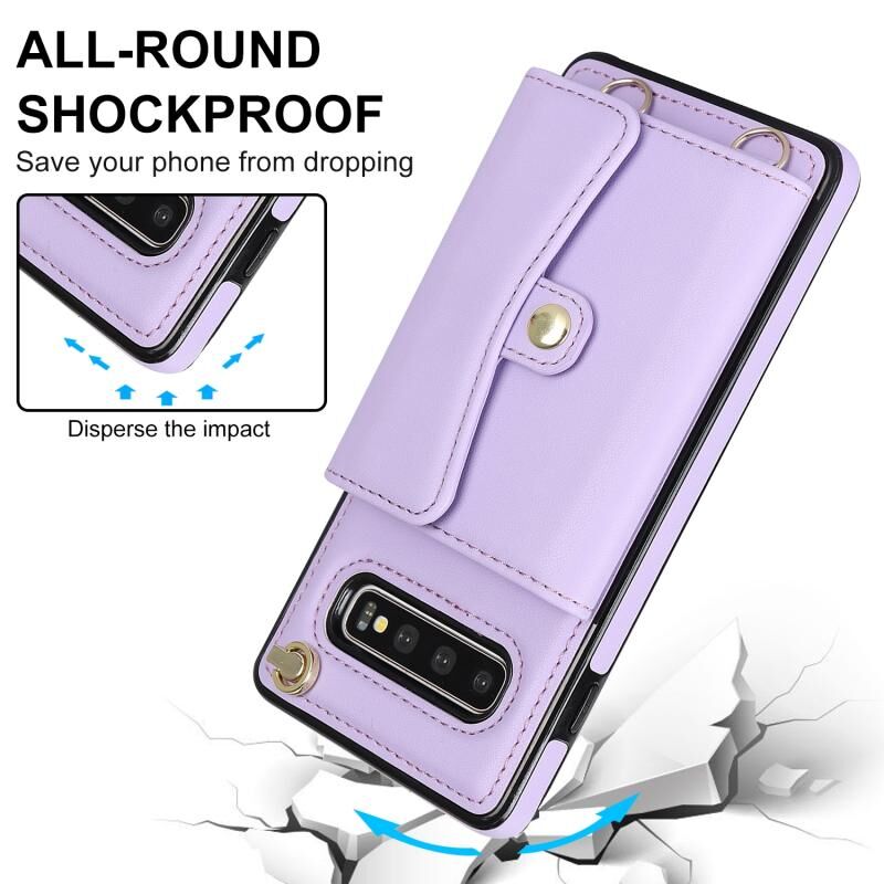Για Samsung Galaxy S10+ RFID Slot κάρτα δερμάτινη θήκη τηλεφώνου με μακρύ κορδόνι (μωβ)
