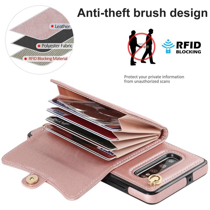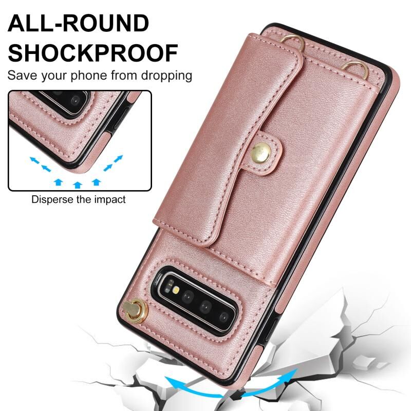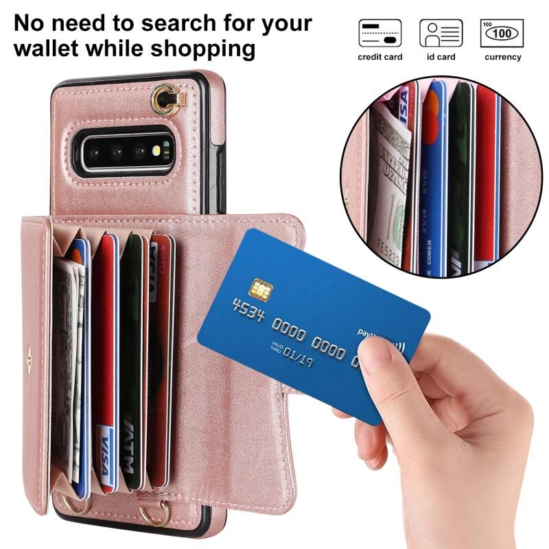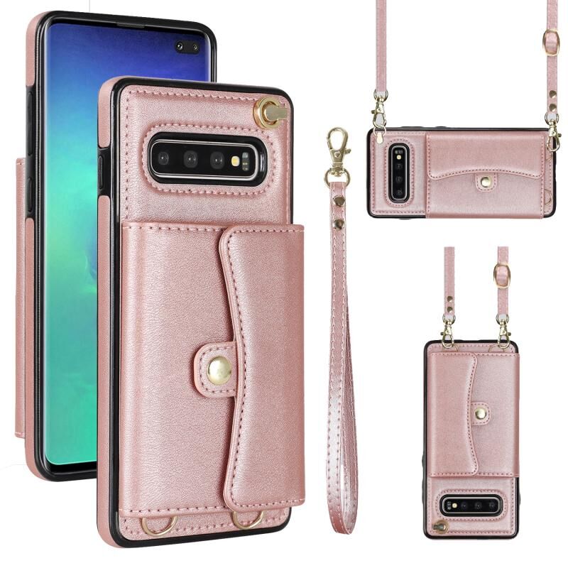 Για Samsung Galaxy S10 RFID Slot κάρτα δερμάτινη θήκη τηλεφώνου με μακρύ κορδόνι (ροζ χρυσό)