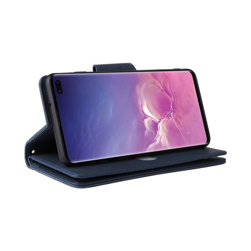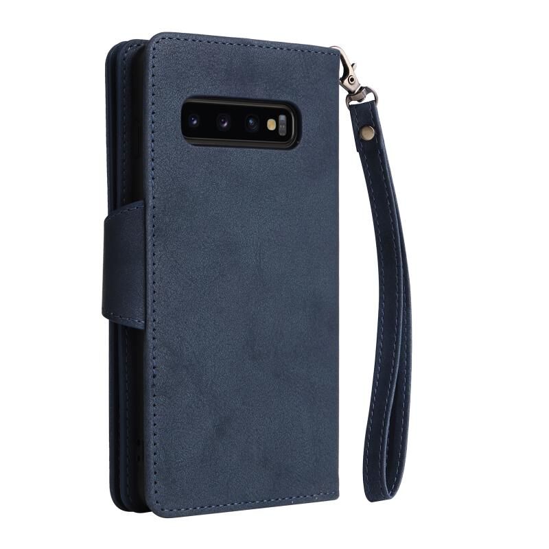 Για Samsung Galaxy S10+ Πριτσίνια πόρπη 9 κάρτες τρεις φορές δερμάτινη θήκη τηλεφώνου (μπλε)