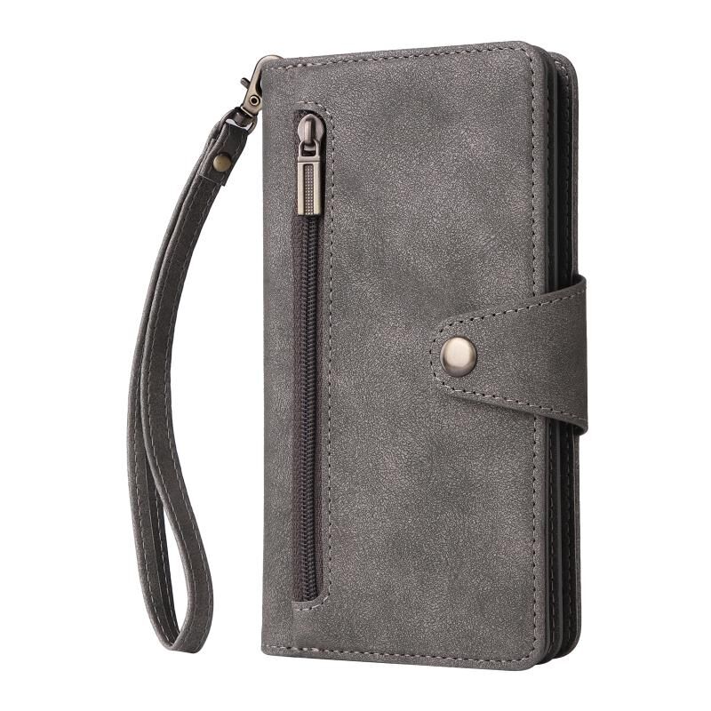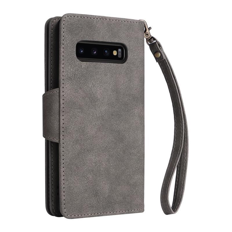 Για Samsung Galaxy S10+ Πριτσίνια πόρπη 9 κάρτες τρεις φορές δερμάτινη θήκη τηλεφώνου (γκρι)