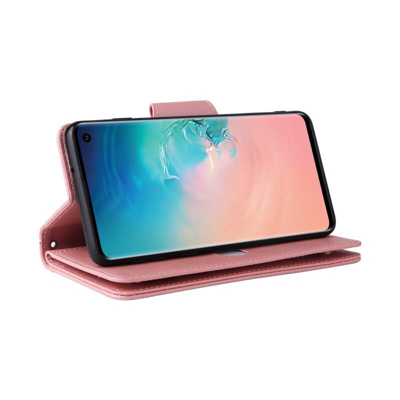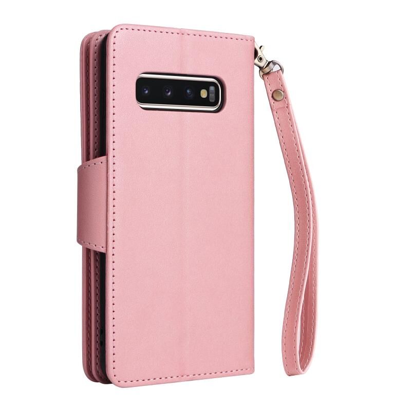Για Samsung Galaxy S10 Rivet πόρπη 9 κάρτες τρεις φορές δερμάτινη θήκη τηλεφώνου (ροζ χρυσό)