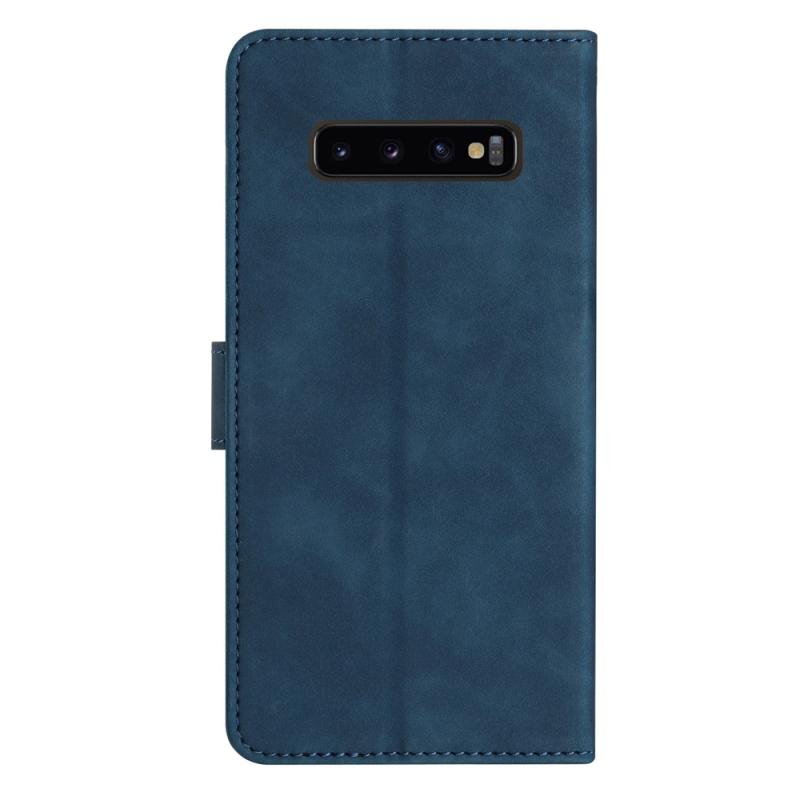Θήκη τηλεφώνου από δέρμα με ανάγλυφο σχέδιο Seven Butterflies για Samsung Galaxy S10 / S10+ (Μπλε)