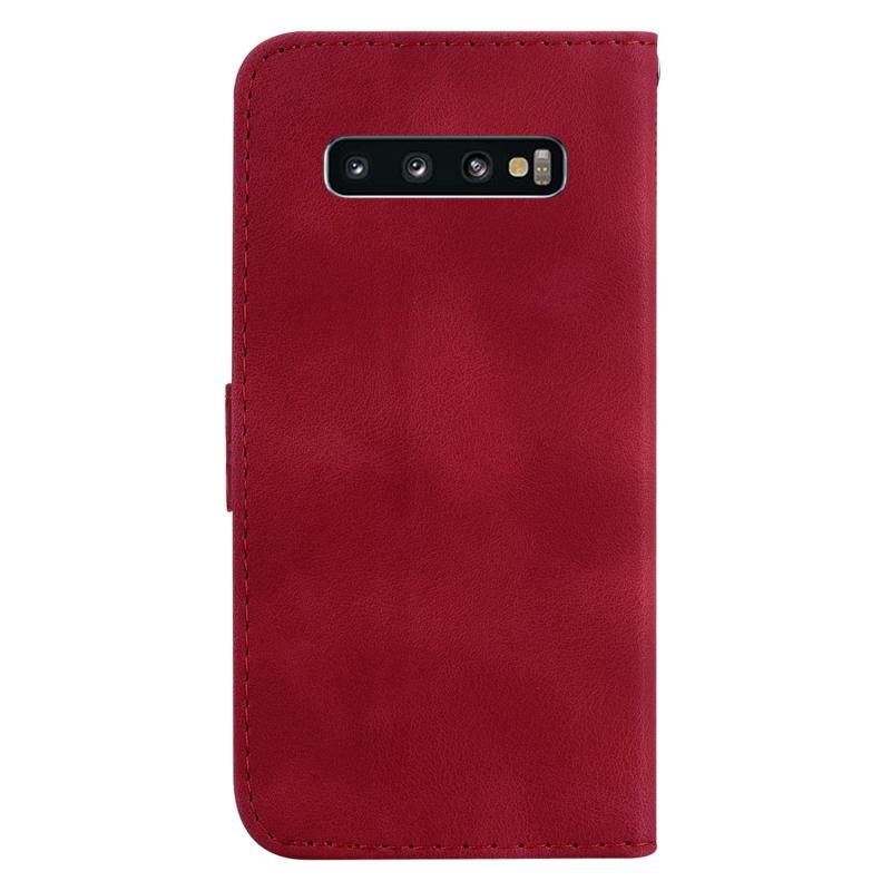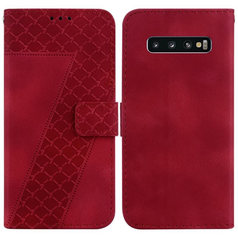 Θήκη Τηλεφώνου από Δέρμα με Εντύπωμα σε Σχήμα Επτά για Samsung Galaxy S10 (Κόκκινο)