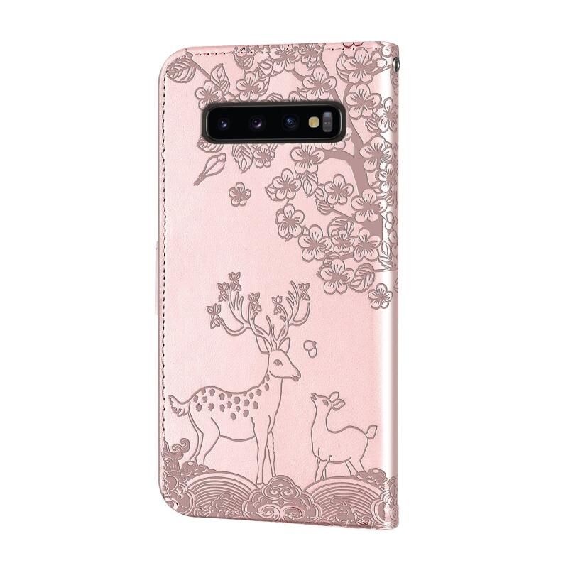 Για Samsung Galaxy S10 Sika Ελάφια ανάγλυφο μοτίβο οριζόντια Flip PU δέρμα υπόθεση με θήκη & υποδοχή για κάρτες & πορτοφόλι & κορνίζα φωτογραφιών (Ροζ χρυσός)