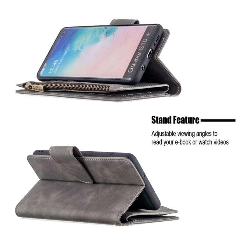 Για το Samsung Galaxy S10+ Skin Feel Αποσπώμενη μαγνητική θήκη με φερμουάρ και οριζόντια αναδιπλούμενη PU δερμάτινη θήκη με υποδοχές πολλαπλών καρτών & θήκη & πορτοφόλι & κορνίζα φωτογραφιών & κορδόνι (Γκρι)