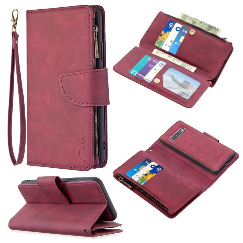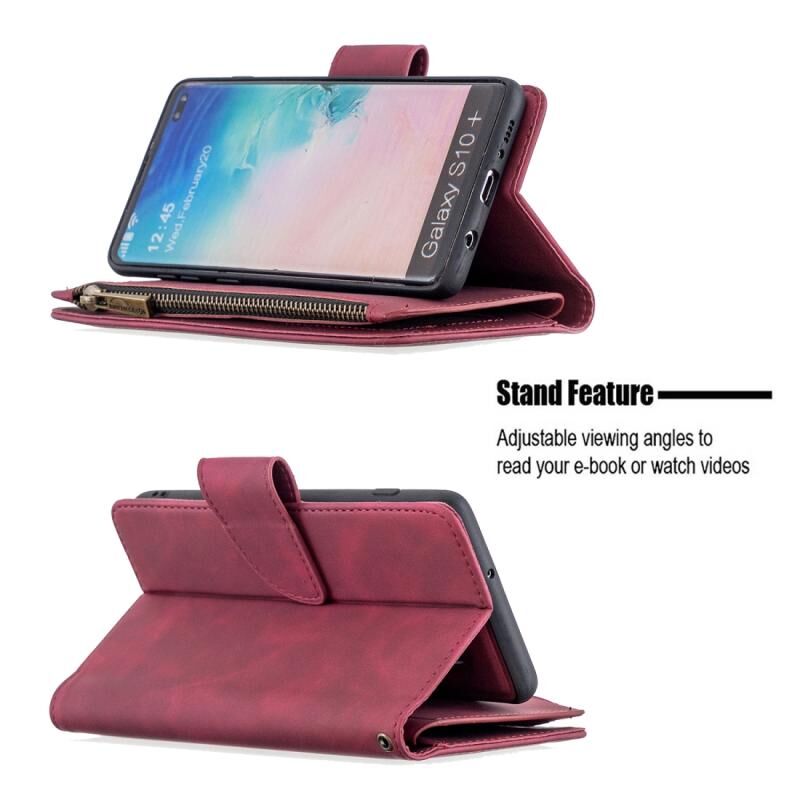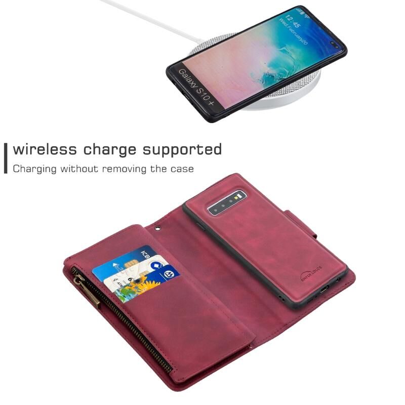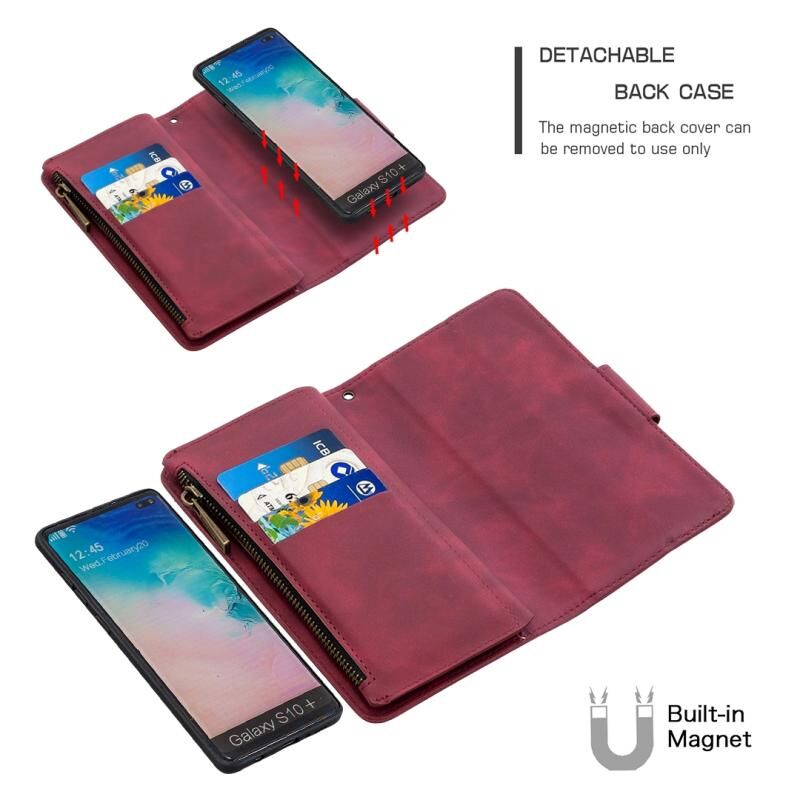 Για το Samsung Galaxy S10+ Skin Feel Αποσπώμενη μαγνητική θήκη με φερμουάρ και οριζόντια αναδιπλούμενη PU δερμάτινη θήκη με υποδοχές πολλαπλών καρτών & θήκη & πορτοφόλι & κορνίζα φωτογραφιών & κορδόνι (Κόκκινο)