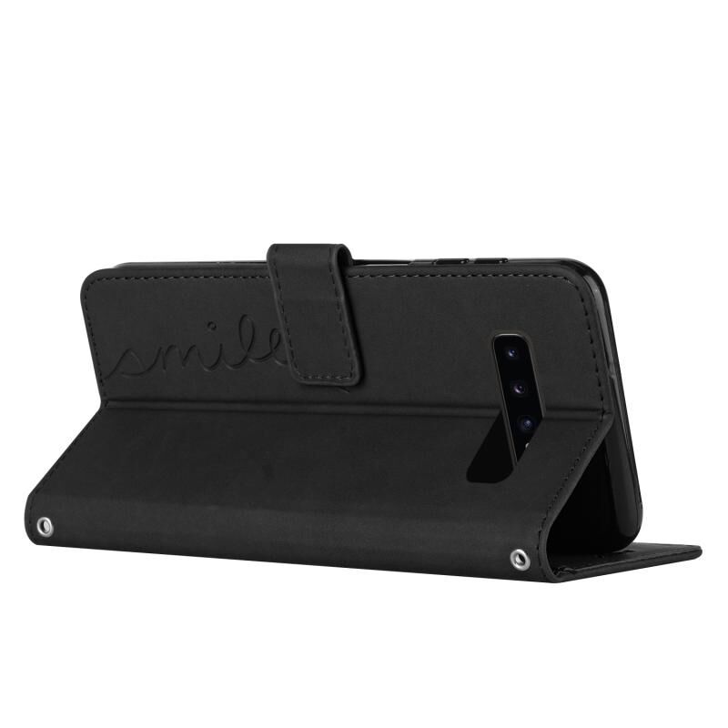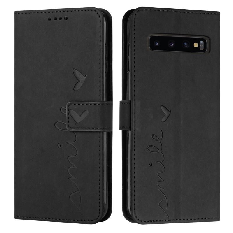Για Samsung Galaxy S10+ δέρμα αίσθηση καρδιά μοτίβο δερμάτινη θήκη τηλεφώνου (Μαύρο)
