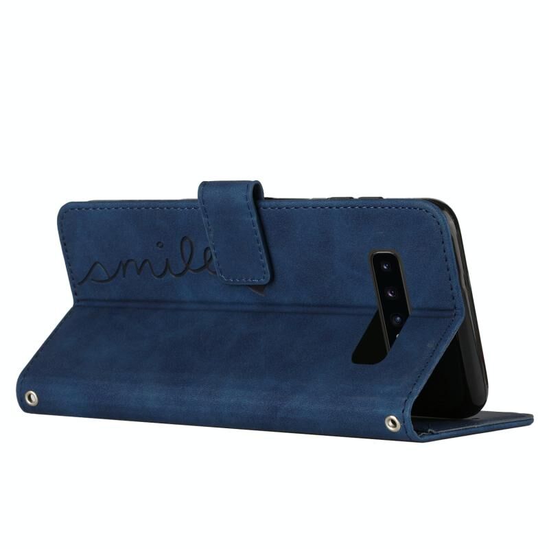 Για Samsung Galaxy S10 δέρμα αίσθηση καρδιά μοτίβο δερμάτινη θήκη τηλεφώνου (Μπλε)