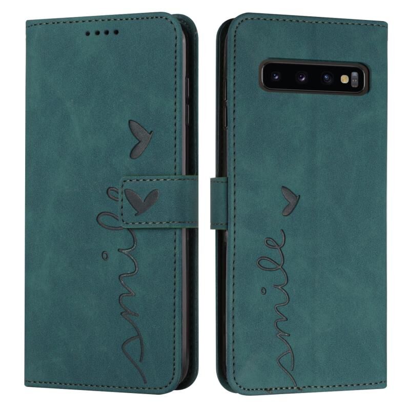 Για Samsung Galaxy S10+ δέρμα αίσθηση καρδιά μοτίβο δερμάτινη θήκη τηλεφώνου (πράσινο)