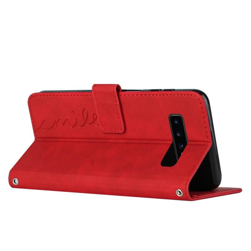 Για Samsung Galaxy S10 δέρμα αίσθηση καρδιά μοτίβο δερμάτινη θήκη τηλεφώνου με κορδόνι (κόκκινο)