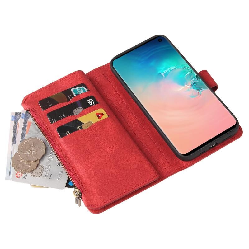 Για το Samsung Galaxy S10 Skin Feel PU + TPU Οριζόντια Flip δερμάτινη θήκη με θήκη & 15 υποδοχές για κάρτες & πορτοφόλι & τσέπη με φερμουάρ & κορδόνι (κόκκινο)