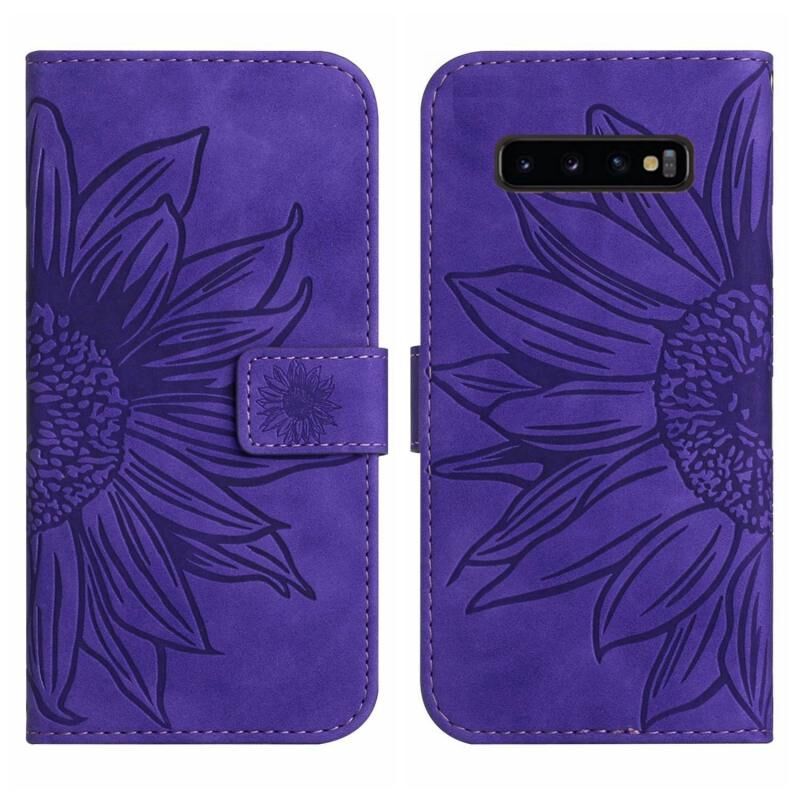 Για το Samsung Galaxy S10 + δέρμα αισθάνονται ήλιος λουλούδι μοτίβο Flip δέρμα τηλέφωνο υπόθεση με κορδόνι (σκούρο μωβ)