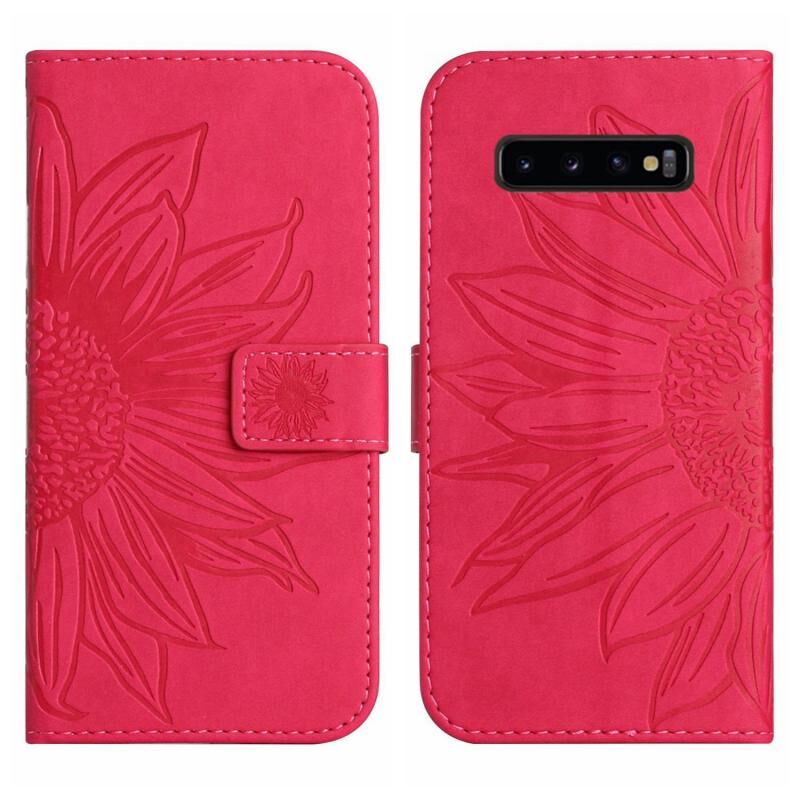 Για Samsung Galaxy S10 δέρμα αίσθηση Sun Flower μοτίβο Flip δέρμα τηλέφωνο υπόθεση με κορδόνι (Ροζέ κόκκινο)